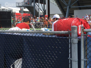 会場内に入ってスタジアムの周りを歩いていると、Airぴぃ🐥の横を選手カートが通り過ぎました😃‼︎その後をカメラマンも追っていきます📹