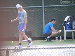 一番奥のコートに、地元カナダ🇨🇦のシャポバロフ選手が練習をしていました🤗