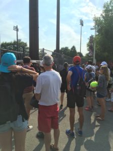 コートに行く通路や、ひとつコートを挟んだ座席のところは練習観戦者がいっぱい🙌
